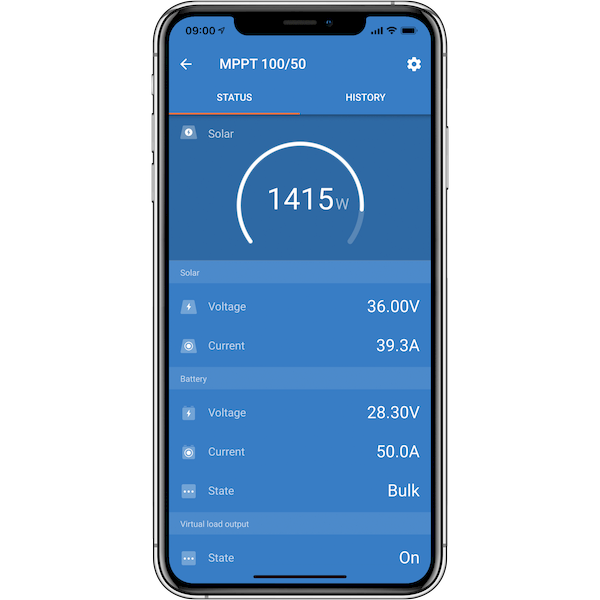 Built-in Bluetooth Smart allows easy setup, monitoring, and firmware updates via the VictronConnect app. The controller also includes VE.Direct communication, a programmable load output, configurable charge profiles, and robust electronic protections.