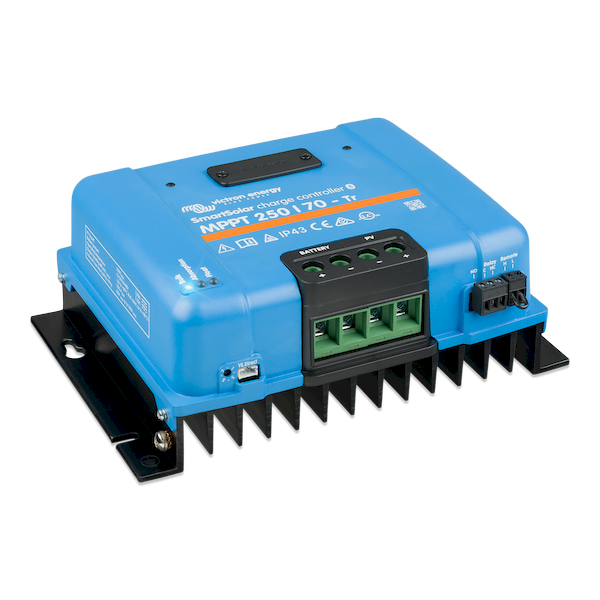 The Victron SmartSolar MPPT 250 | 70 is a powerful 70A MPPT controller with high-voltage support up to 250V PV input, making it ideal for medium and large off-grid solar systems using residential panels. Features include Bluetooth Smart, VE.Direct integration, and ultra-fast MPPT tracking for maximum solar harvest.