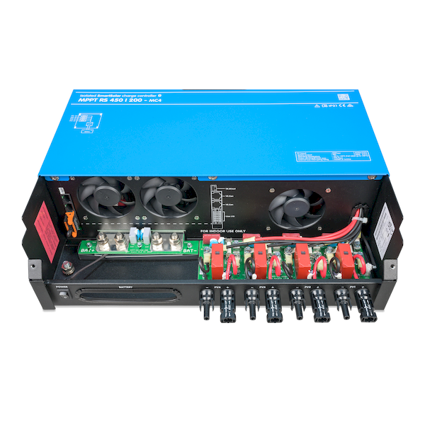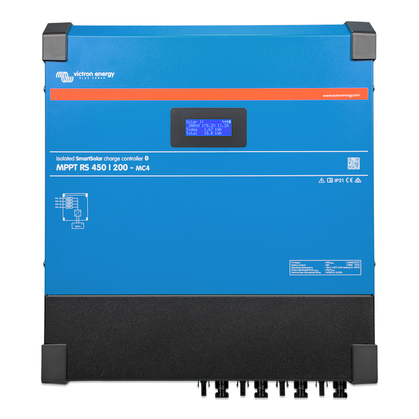 The Victron SmartSolar MPPT RS 450 | 200 MC4 is an ultra-high-efficiency, high-voltage solar charge controller designed for large off-grid solar systems, residential battery banks, commercial mobile power, and advanced RV/marine systems requiring high solar throughput. Supporting an exceptional 450V PV open-circuit voltage and delivering 200A of total charge output (two independent 100A outputs), this controller is engineered for premium high-voltage PV designs.